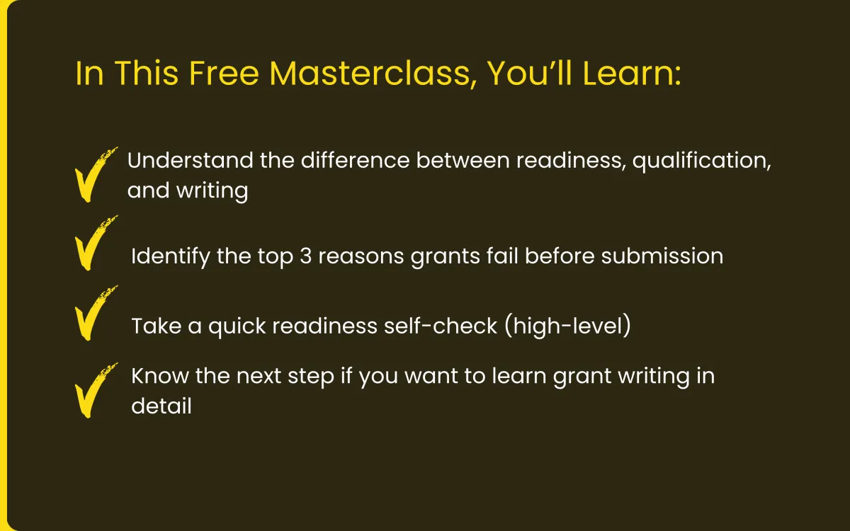 If you want to go deeper and learn the actual grant writing process with readiness built in, I'll share how you can do that.